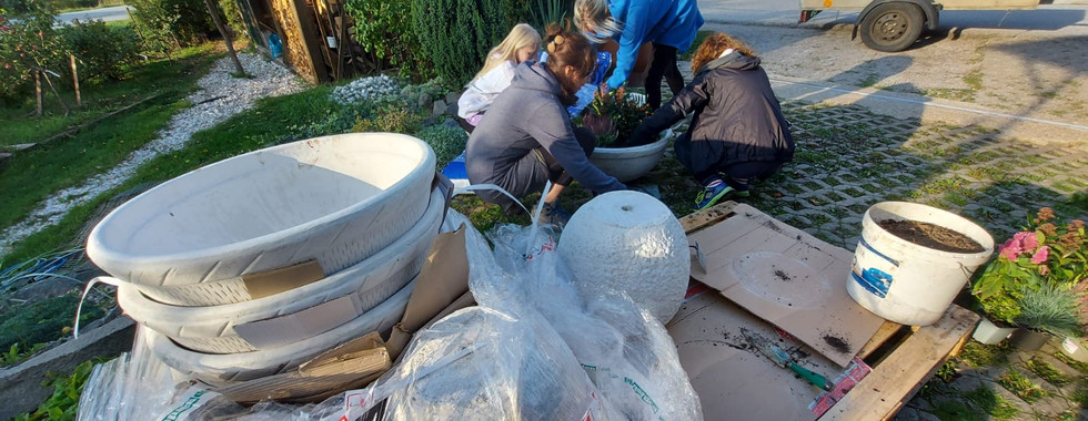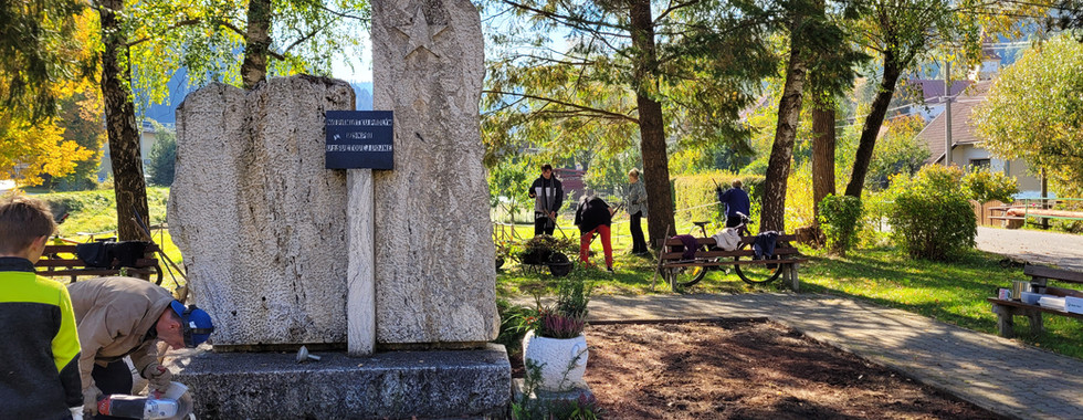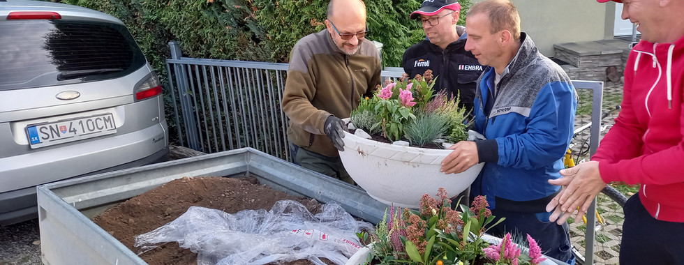 Začali sme so sadením okrasných rastlín a drevín do nádherných črepníkov, ktoré sme následne osadili pred pamätník SNP do parku i na jeho obe strany. Ďalšie črepníky pribudli na zastávke či pri informačných tabuliach. Črepníky sme dokonca osadili aj na historický most - národnú kultúrnu pamiatku. Črepníky pribudli aj pri kostole, čím určite potešia väčšinu veriacich v Novoveskej Hute.